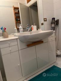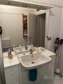 Vendo mobile bagno di alta qualità completo di piano in marmo perfettamente conservato, lavabo, specchiera con faretti integrati e ampio spazio contenitivo.