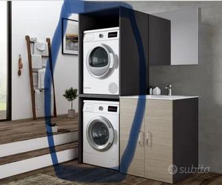 Mobile lavanderia per coprire lavatrice e asciugatrice colore grigio opaco con ante bianche. Dimensioni: L 70 cm, P 68 cm, H 2 m.