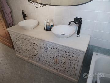 Vendo mobile bagno maison du mond in legno di mango con antine intagliate