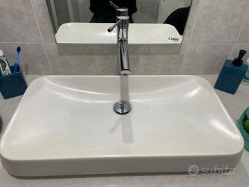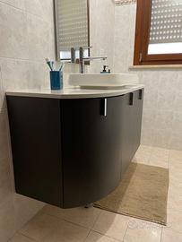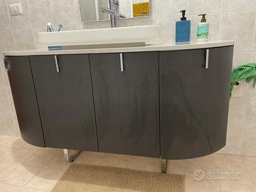 Mobile bagno marca CERASA colore Wengè con 4 ante ed all'interno mensole in vetro, lavabo in ceramica bianco