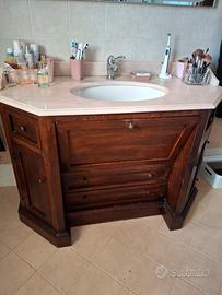 mobile bagno legno noce con piano in marmo, misure 122x58
