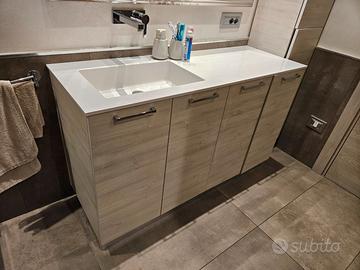 Vendo mobile rovere sbiancato per bagno (escluso rubinetto) di 141x50 (h86) con colonna di 35x32 (h200), originariamente acquistati da Centro Gamma di Desenzano, per cambio arredamento. Acquistati da pochi anni e ben conservati. Specchio 130x95 in omaggio comprando i mobili. Ritiro e smontaggio a carico di chi compra
