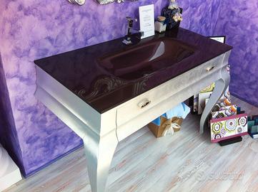 Mobile foglia argento, piano in vetro fuso