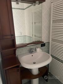 Colonna bagno con specchio e mensola ripiano sotto lavabo, in legno. Prezzo trattabile, lavandino non compreso. No rubinetto. Solo ritiro a carico dell’acquirente. No spedizione.
