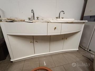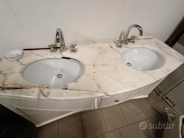 Mobile con piano in marmo da aggiustare, ė stato rovinato dai ladri che sono saliti per prendersi il lampadario.i pezzi ci sono tutti. Insieme vendo anche la rubinetteria, pagata più di 400mila lire. Da ritirare in loco. Il prezzo è comprensivo di tutto anche i rubinetti.regalo la struttura dello specchio.
