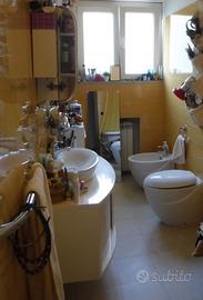 Vendo un mobile bagno sospeso poco usato in legno bianco laccato curvo che può essere riverniciato o restaurato. Presenta già 2 ante scorrevoli (3 posizioni), corsie e maniglie cromate, aggancio murale, adattabile a ogni lavabo in appoggio.