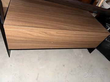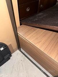 Presente cassettone sul fondo e porta asciugamani inserito nella struttura metallica.