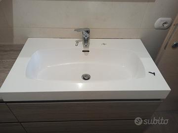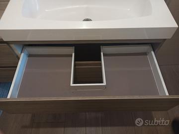 Mobile bagno Scavolini ben tenuto, completo di lavabo rubinetteria e pensile (specchio escluso) Base L 125 (89+35) x H 51 x P 52cm + pensile L 25 x H 75 x 20cm.