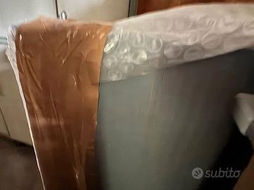 Mobile bagno in legno blu, sospeso con cassettone 120 x 40 cm di profondità, lavandino bianco rettangolare con miscelatore, specchio 120x70, mensola e pensile. Tutto già smontato e imballato per trasporto. Vendesi