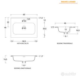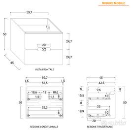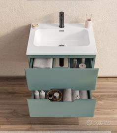Mobile bagno sospeso 60 cm nuovo imballato – verde/rovere + specchio Vendo mobile bagno sospeso nuovo, ancora imballato, acquistato per errore di misura e non più restituibile. Mai aperto né montato. Design moderno con finitura Verde Street e Rovere Biondo, ideale per bagni contemporanei. Struttura sospesa comoda per la pulizia e cassetto con chiusura soft close. Caratteristiche principali: Mobile bagno sospeso con lavabo integrato Larghezza: 59,7 cm Profondità: 45 cm Altezza: 50 cm Materiale mobile: MDF Apertura a gola Chiusura rallentata soft close Cassetto sagomato per sifone Kit fissaggio a muro incluso Lavabo: Integrato in resina bianca Dimensioni: 60 x 46 cm Vasca interna ampia Foro troppopieno presente Predisposto per rubinetto Incluso: Mobile bagno Lavabo integrato Non inclusi: Rubinetteria Kit scarico Specchio 📍 Ritiro a mano a Santa Maria Nuova Spallicci di Bertinoro (FC)
