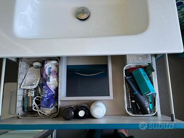 Vendo mobile bagno sospeso con lavabo Tiffany. Poco usato come nuovo. Colore blu petrolio. L 74 cm x H 55 cm x P 46 cm. Chiedere di Alessandro.