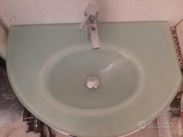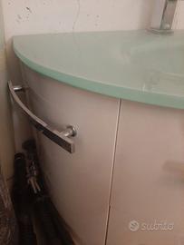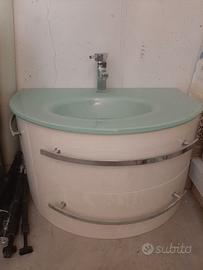 Vendo mobile bagno sospeso con rubinetto squadrato e specchio non presente in foto. il lavandino è in vetro e si presenta in ottime condizioni. Presenti 2 cassetti e nel laterale un porta asciugamani