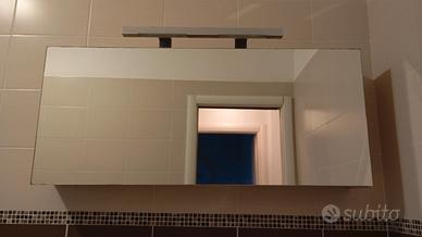 Mobile bagno sospeso con 2 lavabi in ceramica col. rovere chiaro con specchio contenitore anta a ribalta Dimensioni base L.120xH.57xP.51 cm Dimensioni specchio L.118xP.21 cm Ritiro in loco