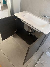 Mobile bagno sospeso grigio antracite 70 × 36 cm Slim con ante Push Pull ideale per piccoli bagni o lavanderie o strutture ricettive. Altezza del mobile 51 cm Il prezzo include il lavandino e il miscelatore Paini con canna lunga