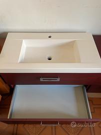 Vendo mobile bagno sospeso, marca 2b, in legno, con lavabo e specchio (orizzontale).