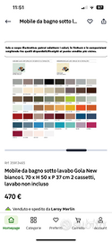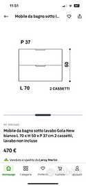 Il mobile ha due cassetti, il cassetto superiore non ha lo scanso per il sifone perciò è più spazioso (è compatibile con sifone piatto di Leroy Merlin). Il mobile è COMPLETAMENTE NUOVO, è ancora nello scatolone non è neanche stato montato.