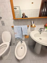 Vendo arredo bagno completo composto da: * Mobiletto in legno con anta e cassetto * Specchio grande con struttura in legno * Luci integrate sopra lo specchio * Accessori coordinati (porta asciugamani e supporti) Tutto in buone condizioni, funzionante e pronto all’uso. Design semplice e funzionale, adatto a qualsiasi bagno. 📦 Smontaggio e trasporto a carico dell’acquirente