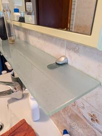 - mobile lavabo con cassetti e anta in vetro e mensola di vetro lato sx (92 cm lunghezza, profondità 33,5 cm, altezza 62 cm)
