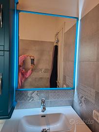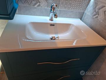 Mobile bagno,compasto da lavandino in ceramica...e mobile con 2 ampi cassetti scorrevoli,specchio con retroilluminazione..grande colonna a doppio scomparto...in perfetto stato..unico neo..piccola riga sullo specchio..consegna a Roma o a Frosinone