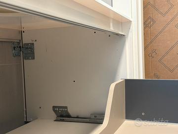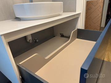 Causa trasloco vendo mobile contenitore bagno di grande qualità, a sospensione con bellissimo top in vetro bianco, frontale blu, interno color crema in smil pelle.