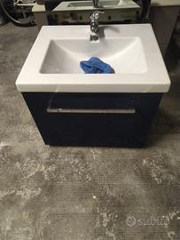 Mobile bagno colore blu largo 63 e profondo 53.cassettone chiusura rellentata.completo di specchio e applique.grazie
