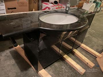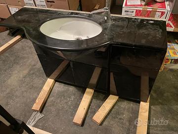 Vendo mobile bagno nero laccato lucido completo di lavabo in ceramica incassato e top marmo nero assoluto composto da tre antine e due cassetti Ritiro e trasporto a carico dell’acquirente