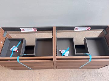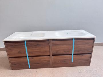 Vendo mobile da bagno nuovo ancora imballato, sospeso con doppio lavabo, misure 140x45, mobile in legno color noce con doppio cassetto e cerniera rallentata, piano in korian bianco opaco e scarico con troppopieno