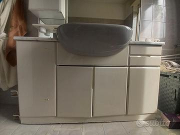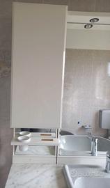 Vendesi mobile bagno completo di specchio e cassetti. Color bianco, il mobile ha lunghezza di 140 cm, profondità 52 cm e altezza 198 cm dal pavimento. Il mobile comprende l'illuminazione (faretti), il lavandino (marca Ideal Standard) con rubinetto (recentemente rinnovato).