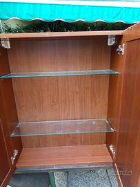 Pensile compreso di ripiani in vetro e specchiera compresa di lampade funzionanti.