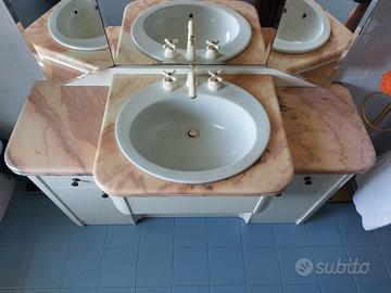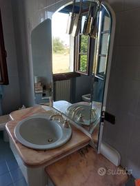 Vendo mobile bagno con piano in marmo completo di specchio con le due parti esterne pieghevoli porta lampada. Mobile in ottime condizioni.