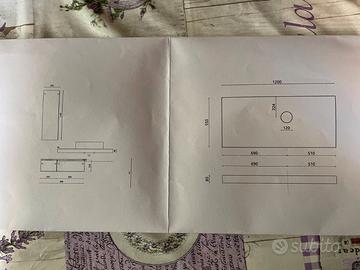 top x lavabo da appoggio cm 120 profondità 52 h 10