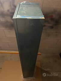 Mobile da bagno verticale, ancora imballato, con la sua pellicola, acquistato come set con il mobile lavandino. Sono presenti anche dei ripiani in vetro che sono da montare.