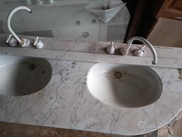 mobile bagno con doppio lavandino specchio piano in marmo