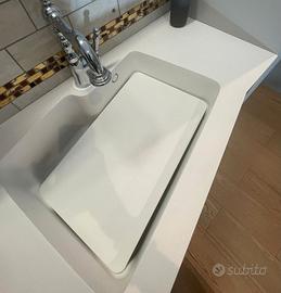 -piano sagomato per lavella integrata in ocritec opaco bianco+ lavatoio copertura