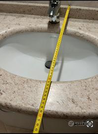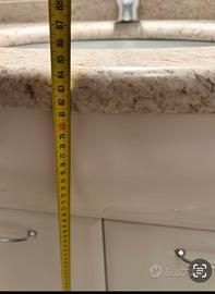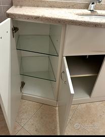 Mobile bagno usato, completo di ante e ripiani in vetro, base in pietra tipo marmo, lavabo con una piccolissima scheggiatura sempre avuta. Solo Ritiro in loco. Il marmo è gia stato staccato ma è integro, basta riattaccarlo con silicone.