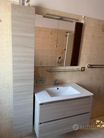 Mobile bagno completo di lavabo e specchio.