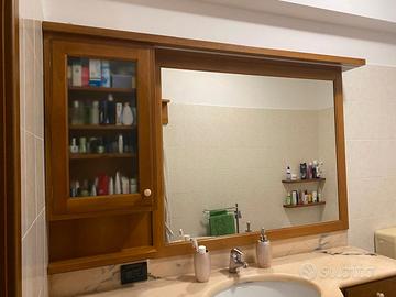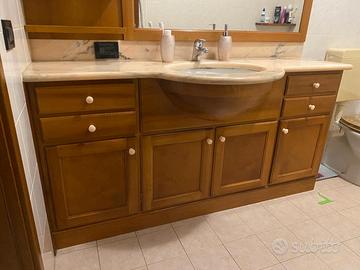 Mobile bagno in noce nazionale 168,5 x 38,5 completo di specchio, lavabo, led e top in marmo rosa portogallo usato ma tenuto benissimo.