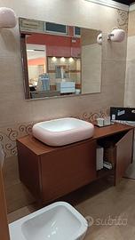 Vendo per rinnovo locali elegante mobile bagno stile vintage modello “Rosa Vintage”, caratterizzato da finitura effetto legno caldo e lavabo in ceramica rosa dal design morbido e raffinato.