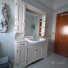 Mobile bagno vintage bianco laccato, con qualche segno dell'età, ma in condizioni buone. Restaurato farà la sua figura e manterrà la resistenza del legno pieno ancora per anni.