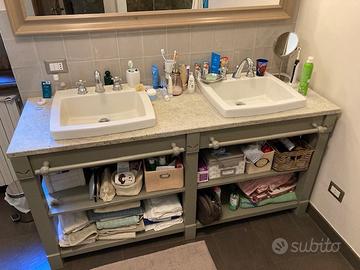 Mobile bagno Minacciolo 170x50 come nuovo lavandini e rubinetteria di alta gamma. Legno massello laccato color argilla. Piano in marmo lavorato. Il piano è appoggiato può essere facilmente sostituito secondo propri gusti.