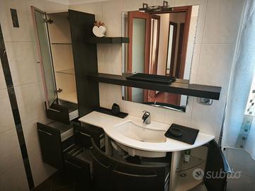 Vendo mobile bagno wenge pari al nuovo. Cassetti a chiusura ammortizzata, colonna con mensole in vetro( abbiamo anche vetri di scorta). Completo di lavabo e rubinetto, ma escluso specchio. Larghezza totale 165 cm. Larghezza solo colonna 35 cm.