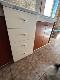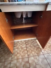 Mobile bagno con doppio lavabo. piano in marmo, rubinetteria Ideal standard, specchiera e faretti. Larghezza 2m Profondità 62 cm Altezza da piano alla parte alta:compresa parte faretti: 130 cm. Smontaggio e trasporto a carico dell’acquirente.
