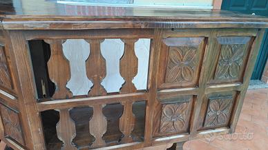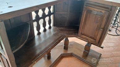 mobile bar anni 80 anolare in castagno massello lunghezza 150 profondità 105 altezza piano 116 ....M&P Antichità siamo un negozio specializzato in antiquariato vintage e shabby vendita al dettaglio e all ingrosso scarichi settimanali oltre 500 articoli in negozio, abbiamo una vasta scelta di como comodini tolette armadi letti vetrine vetrinette credenze servanti angoliere librerie tavoli tavolinetti sedie poltrone poltroncine divani lampade lampadari tappeti scrivanie scrittoi secretere ribaltine consolle quadri cornici specchi cassapanche bauli oggettistica varia idee regalo e molto altro ci troviamo a Roma zona Castelverde via Massa San giuliano 26b POSSIBILITÀ DI CONSEGNA E SPEDIZIONE IN TUTTA ITALIA
