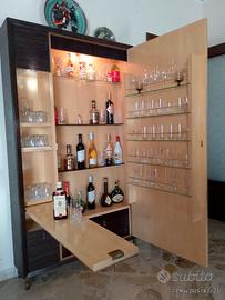Pezzo unico creato da ebanista mobile bar anni 50/60 interamente in palissandro e ciliegio. Un meraviglioso dipinto dei Decalage sull'anta.