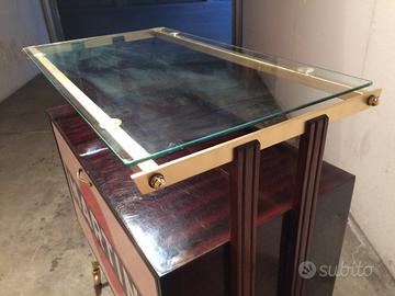 Mobile bar anni '50 con rotelle funzionanti, restaurato. Sullo sportello anta del mobile e sotto la scritta Martini, esiste un disegno originale in bianco e nero di un paesaggio. Astenersi da offerte ridicole, no curiosi e perditempo. No spedizione. Consegna a mano. Grazie.