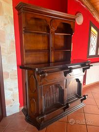 Piano bar bancone , credenza posteriore e due sgabelli anni 80 in legno massello Pezzo vintage come nuovo