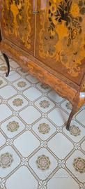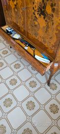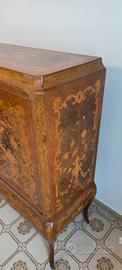 vendo a malincuore, questo mobile di artigianato Sorrentino intarsiato, il mobile è di grande qualità, e si presenta in condizioni ottime. cassetto a scomparsa, fondo interno a specchio e mensola in vetro. Dimensioni altezza 125, lunghezza 100, profondità 45.