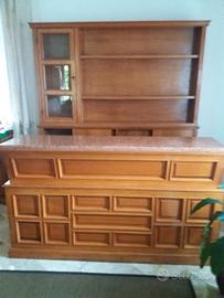 Mobile rialzato su pedana di legno, bancone con marmo e vetrinetta tenuto in ottime condizioni.