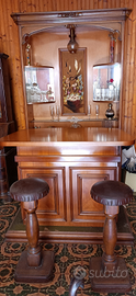 Bellissimo mobile bar con 2 sgabelli in legno non spedisco no perditempo grazie. Smontaggio e montaggio a carico di chi compra.