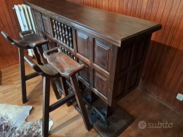 Mobile bar con due sgabelli, adatto a tavernetta. Consegna sul posto e trasporto a carico delll'acquirente.